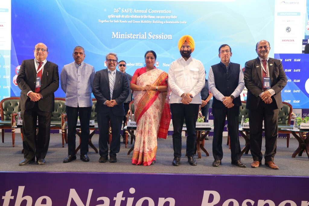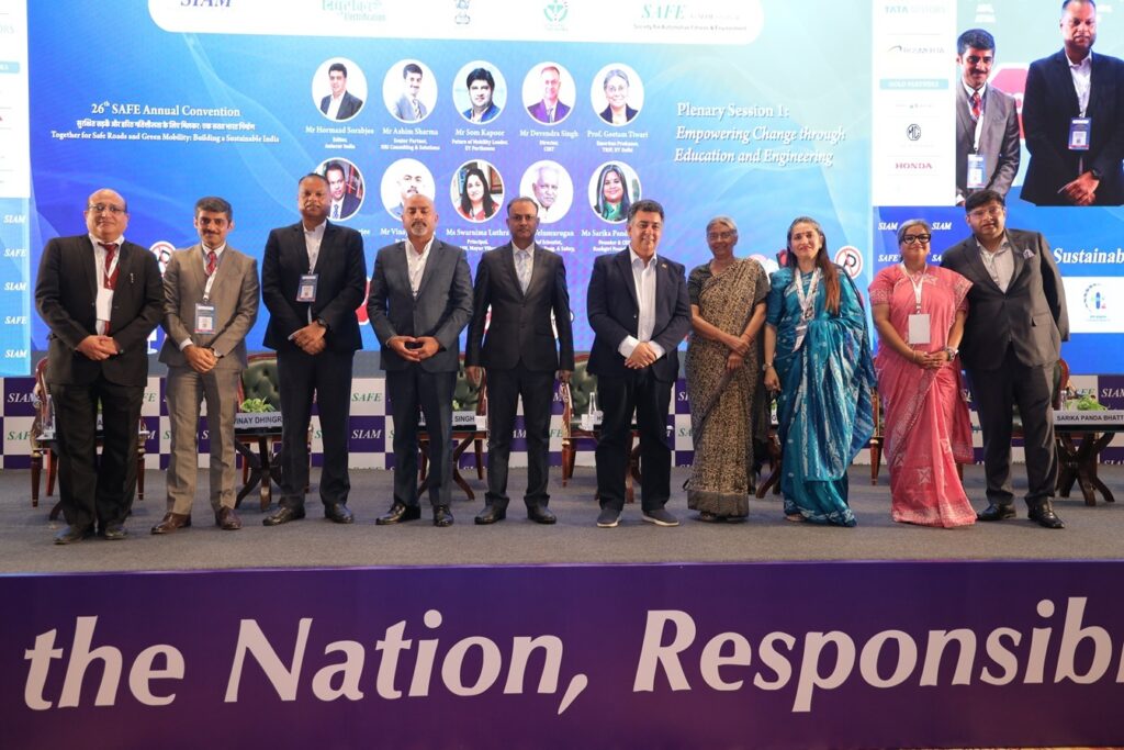 To deliberate on advancing road safety, fostering responsible driving practices, and accelerating the transition towards greener mobility solutions, the Society for Automotive Fitness & Environment (SAFE), an initiative of the Society of Indian Automobile Manufacturers (SIAM), organised the 26th SAFE Annual Convention under its Safe Journey (सुरक्षित सफर) initiative at Bharat Mandapam, New Delhi. At the convention, themed ‘Together for Safe Roads and Green Mobility: Building a Sustainable India,’ policymakers, industry leaders, and experts discussed strategies to advance road safety and accelerate the transition towards sustainable mobility in Delhi and in India.