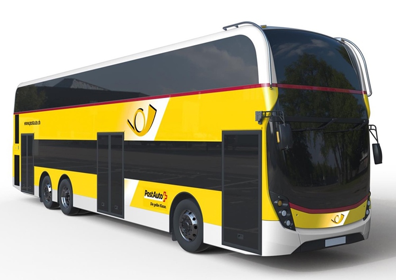The third of Mr. Colin Robertson’s unexpected new product announcements will impact on a market nearer to home, namely Switzerland, where the country’s biggest supplier of road-based transport, PostAuto, which operates over 2,200 vehicles, has indicated its intention to introduce a fleet of 19 double decks.
