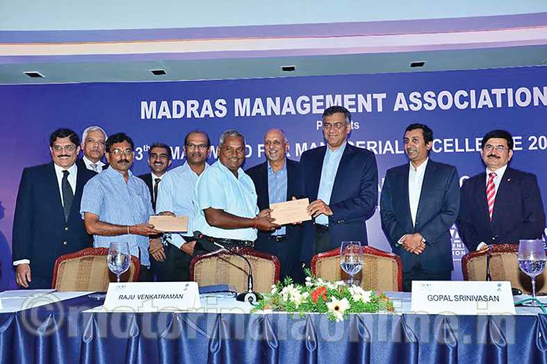 Mr. Gopal Srinivasan of the TVS Group, installed Mr. Ganesan as the Chairman on July 4 in the presence of Mr. Srivatsan Ram, Managing Director, Wheels India, Mr. Chandrasekar, Vice Chairman, CTS, Mr. Vijayakumar, Executive Director, MMA, Mr. Raju Venkatraman, New President of MMA, Mr. Sivakumar Prabha of TVS Chennai and past Presidents and members.