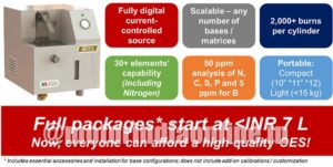 As in most fields however, the last 10-15 years have brought about a revolution in virtually every area. The smallest OES then occupied half a room; today, the smallest measures less than one cubic foot (1 ft3). While the least expensive OES then was priced at ~Rs. 20 lakhs, today, a far more powerful one is available for <Rs. 7 lakhs! Nitrogen analysis, then limited to the high-end alone, is now featured even on entry-level models. In short, literally everything has changed.