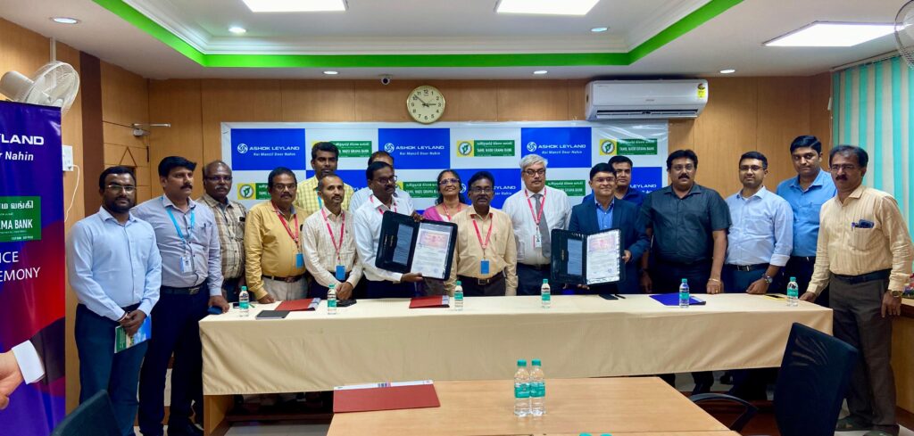 Ashok Leyland has signed a Memorandum of Understanding (MoU) with Tamil Nadu Grama Bank to enter into a strategic vehicle financing partnership to provide customized loan options and enhance accessibility for commercial vehicle customers across Tamil Nadu.