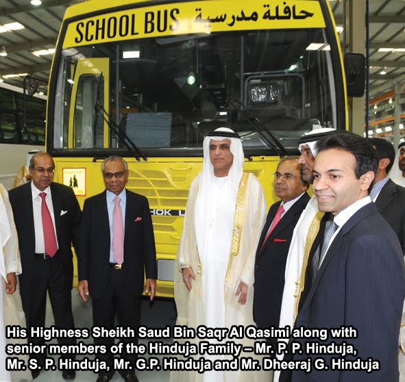 His Highness Sheikh Saud Bin Al Qasimi, Supreme Council Member and Ruler of Ras Al Khaimah inaugurated the state-of-the-art vehicle factory of Ashok Leyland (UAE) Ltd., a joint venture between Ashok Leyland, the flagship of the Hinduja Group and the Ras Al Khaimah Investment Authority (RAKIA), at Ras Al Khaimah. The function took place in the distinguished presence of His Highness Sheikh Nahayan Mabarak Al Nahayan, Minister of Higher Education and Scientific Research, UAE, Dr. Khater Massaad, Chief Executive Officer, RAKIA, Mr. Srichand P. Hinduja, Chairman, Hinduja Group, and other dignitaries from the Hinduja Family and senior management of Ashok Leyland.