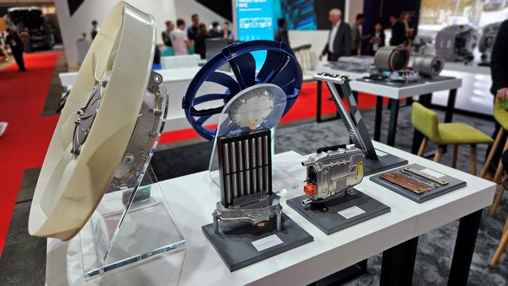 BorgWarner’s booth prominently featured its latest high-voltage electric fans, developed to meet the thermal requirements of buses and heavy-duty trucks. One smaller eFan, designed for bus applications, delivers between 3 to 5 kilowatts, integrating air-cooled power electronics into the rear of the unit. For heavier-duty applications, a scalable eFan with 10 to 20 kilowatts of power was on display, offering flexible deployment across 12.5 to 18.5-meter buses and trucks.