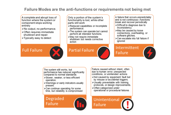 For each identified failure mode, specific causes must be defined. At the component level, causes may relate to material properties, geometry, dimensions, interfaces with adjacent components, or energy interactions that inhibit functionality. These causes are often derived from preliminary analytical tools such as Boundary (Block) Diagrams, Parameter (P) Diagrams, and Interface Analysis.