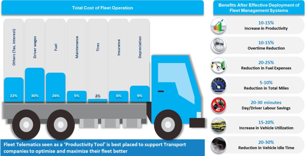 Telematics is increasingly being viewed as a strategic tool for maximizing performance of fleets. When deployed effectively, it has the potential to reduce fuel costs by 20%-25% and asset idle time by 20%-30%, while significantly improving asset utilization. These outcomes highlight the growing perception of telematics as a core productivity enabler rather than just a compliance tool.
