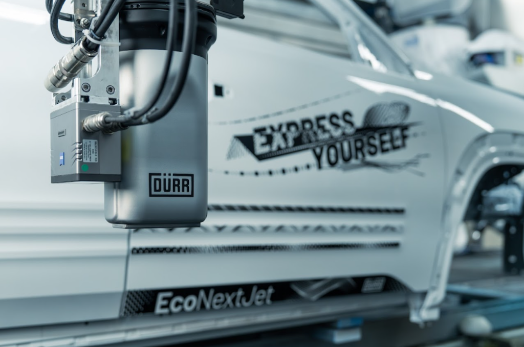 Dürr has unveiled the new EcoNextJet that prints complex graphics, patterns, and lettering directly onto vehicle surfaces in high resolution, both horizontally and vertically, and in two colors when required. Dürr’s new application system integrates custom designs directly into the painting process, replacing films and manual steps with an automated sequence that frees up resources.