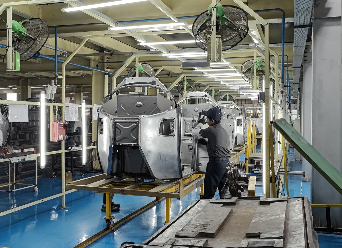 The journey of each vehicle in Ambattur begins with precision. A unique VIN is stamped onto the body, after which the shell receives a Gen-11 ED coating — the same corrosion protection used in modern passenger cars, tested to withstand 1,200 hours of salt spray. Robots then take over, laying down an even top coat that gives every vehicle a clean, uniform finish.