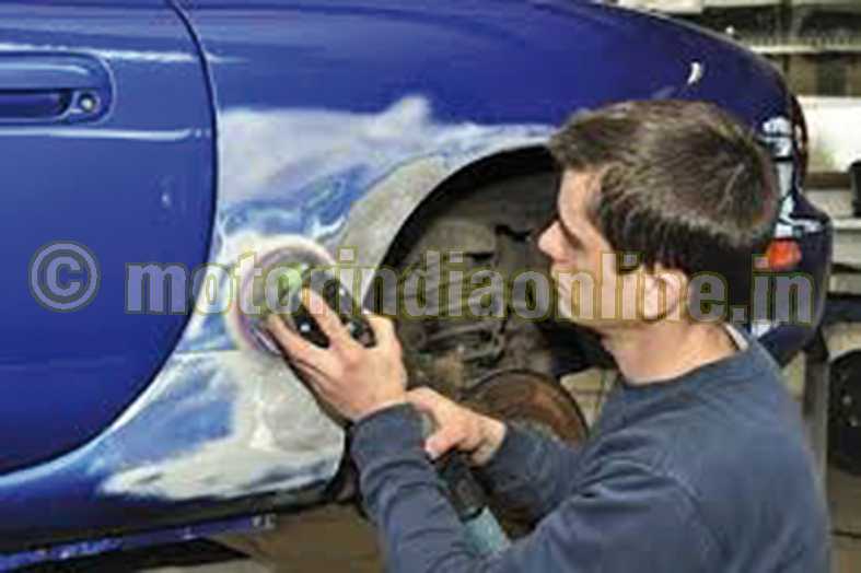 * Reshaping of the damaged metal part and sanding of the old paint or rust, if any.