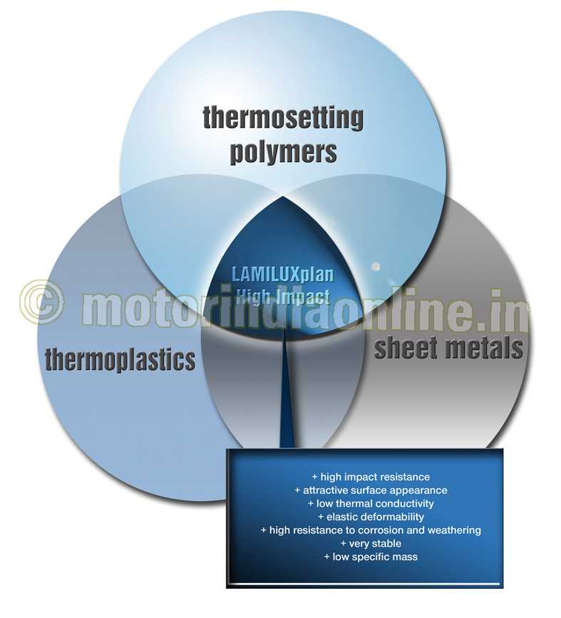 LAMILUX High Impact, at the same time, compensates for the disadvantages of materials, such as susceptibility of metals to corrosion and the poor paintability of thermoplastics.