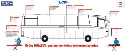 Nothing in Indian automotive history is complete without Tata Motors. In 2003, the company launched the Starbus and Globus range of buses, and Tata Motors clearly mandated usage of PU sealants across all its buses. This further added to the increase in usage of PU. Today close to 80 per cent of the bus market is using PU-based sealants and within that McCoy dominates with a marketshare of well over 50 per cent.
