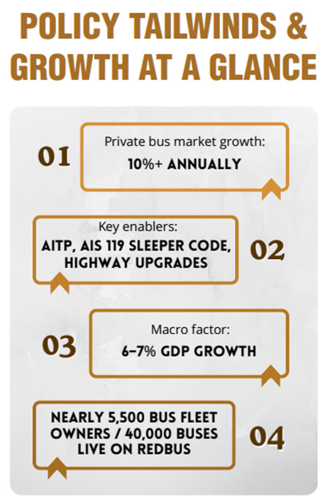 “India is a vast market with diverse passenger needs. This space is not about one winner but thousands of winners across regions. We see entrepreneurs from all walks of life entering the bus business and succeeding, because digitization and platforms like ours help level the playing field.”