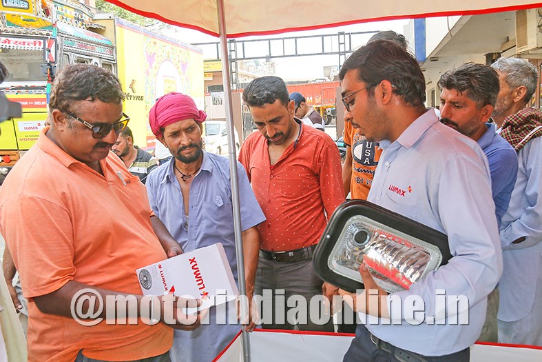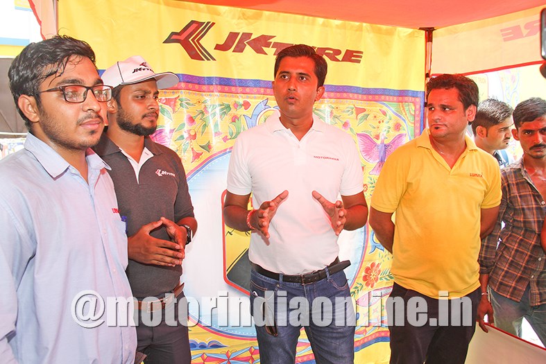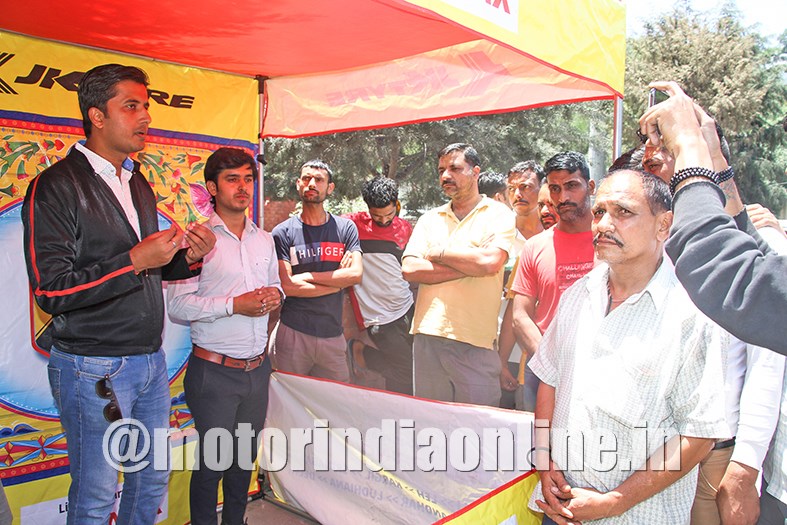 With an increasing number of locals gathering around us, I, Ritesh and Sahil stood below the canopy from where I informed the drivers about how we would spend the next hour with them to sensitize them about tyre safety measures and the importance of proper lighting while also engaging in some ‘fun’ activities to acknowledge their role in keeping the economy of the nation in constant motion. Ritesh provided insights about tyres and how it was important for any driver to select the right tyres as per the vehicle type and use. He stressed upon critical factors to be considered for the selection of any tyre, including aspects like speed and sustained operations, tyre size and rim profile for various roads and terrain, and design requirements based on the application. The drivers took active interest in asking questions related to tyre pressure, service and maintenance.