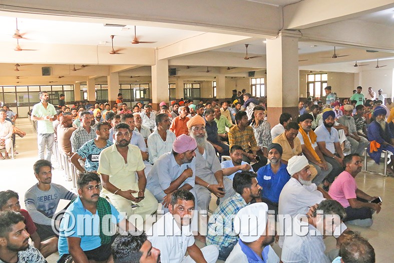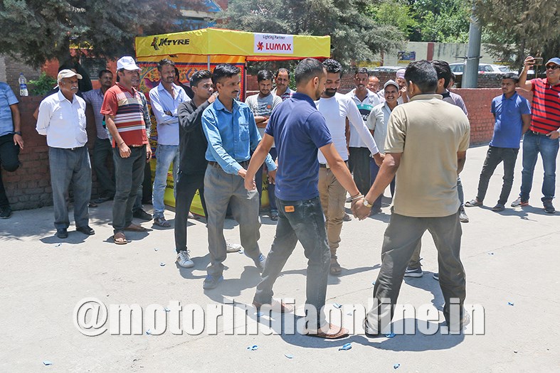 Outside the hall, our colourful truck had parked itself alongside the main entry point of Baddi Union, which is considered as Asia’s largest pharmaceutical centre. Baddi is home to over 2,000 companies ranging from engineering, packaging, electrical equipment, food processing and textile units which have established manufacturing plants and research and development hubs in the town. As expected, the JK Tyre Happiness Truck supported by Lumax as our lighting partner, drew a large crowd, in particular the drivers who were in that area. Our crew quickly erected a canopy and addressed the gathering about the campaign and the agenda. The camera crew, consisting of four members, were split into two groups. While one covered the outside activities, the second team shot the ‘boli’ proceedings happening in the hall.