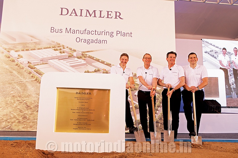 DICV lays the foundation-stone for its new Rs. 425 crore bus plant adjacent to its existing truck facility in Oragadam near Chennai. While its rear-engine buses will continue to be branded Mercedes-Benz, new front-engine buses will be made at the facility under the BharatBenz badge. The first bus from the facility is expected to roll-out by Q2 2015.