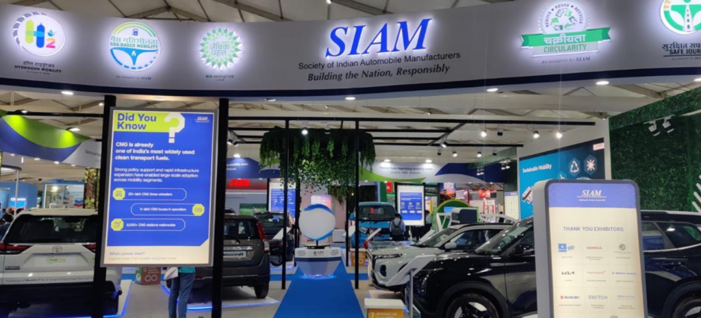Located in Hall No. 3, the pavilion featured 16 production-ready vehicles and technologies across a wide spectrum of cleaner fuel and powertrain options — including electric, gas, hydrogen and biofuels. Major SIAM member OEMs such as Maruti Suzuki, Mahindra & Mahindra, Tata Motors, Toyota Kirloskar Motor, TVS Motor, Bajaj Auto, Honda Motorcycle & Scooter India, Kia India, Switch Mobility and Suzuki Motorcycle India participated, demonstrating the sector’s unified commitment to greener mobility pathways.